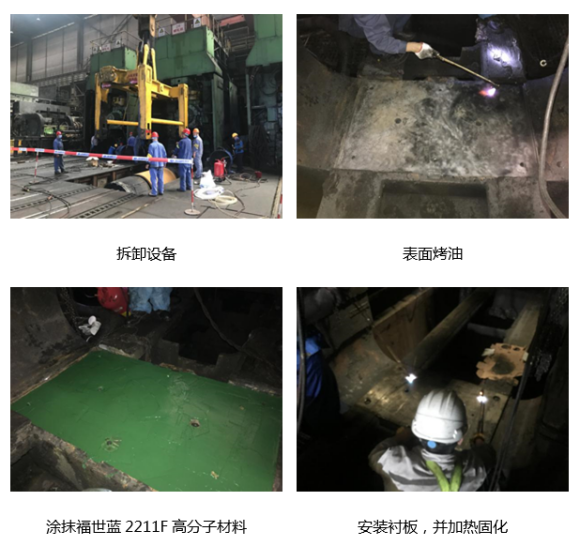福世蓝高分子复合材料应用于轧机底板等部件上修复,较大的优点就是能现场修复,精度高效果好,除此之外,该模式还具有以下几个优点: