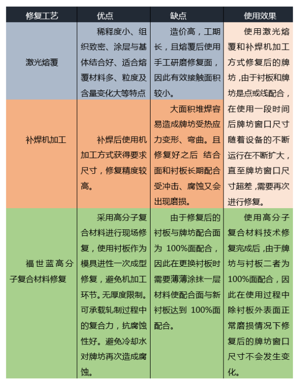 此类问题在线机加工并不能完全有效解决问题,只是权宜之计,且费时费力,报废换新周期长、费用大也无法实现。高分子复合材料以其优异的物理性能和化学性能可以使修复后的设备在保证精度的前提下增大有效接触配合面,增****坊刚度,避免传统工艺修复后冷却水侵入再次造成的牌坊腐蚀问题的恶性循环。